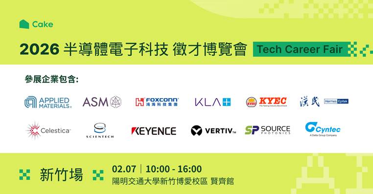 【轉知】2026半導體電子科技 徵才博覽會:Cake 2026 Tech Career Fair 2/7 年前登場!